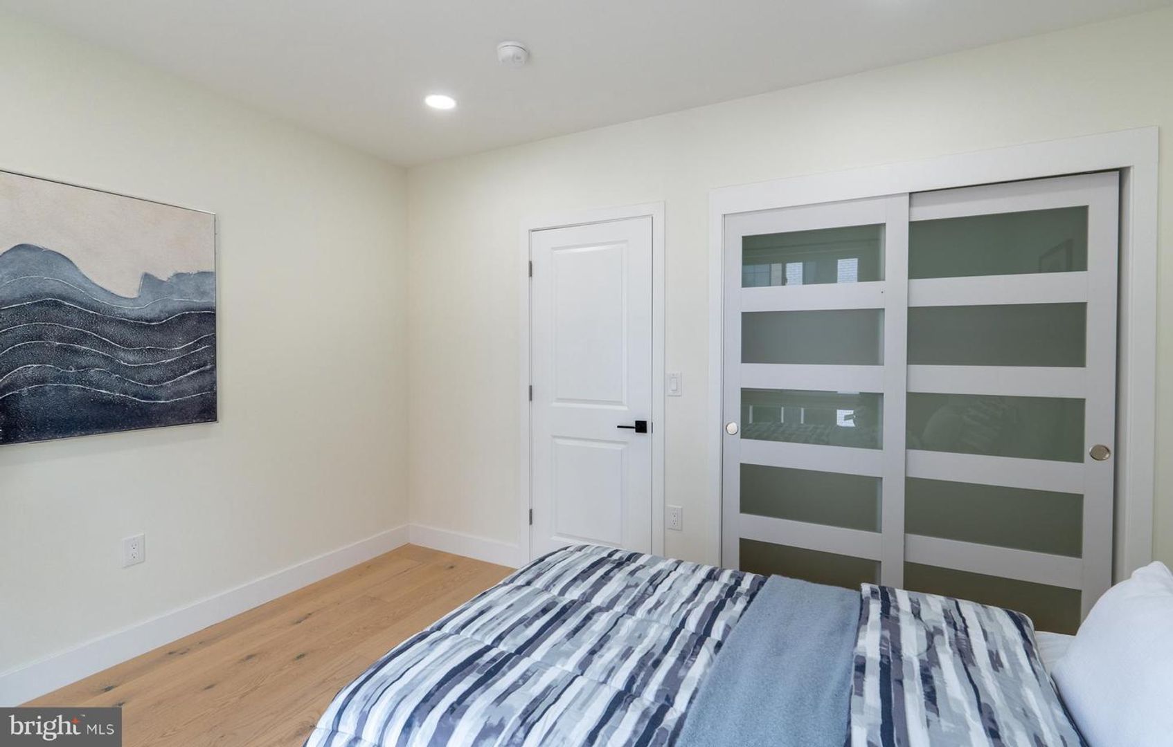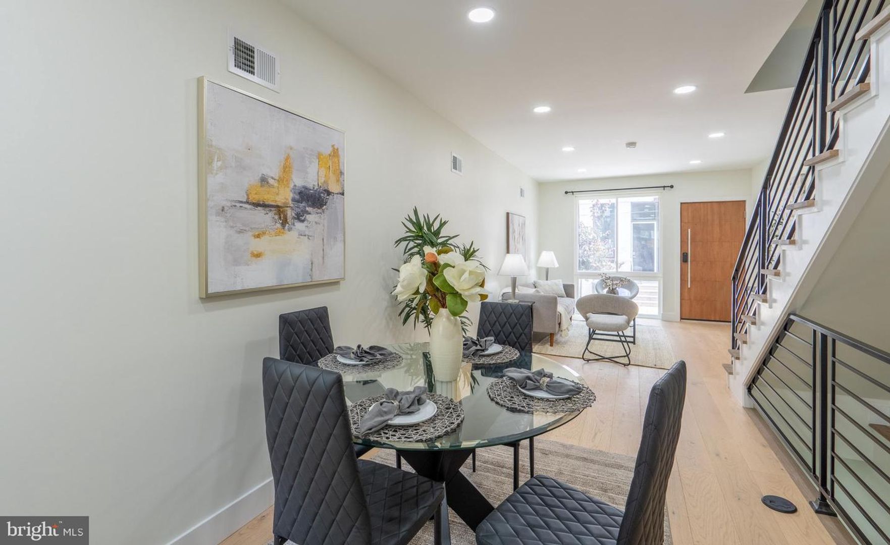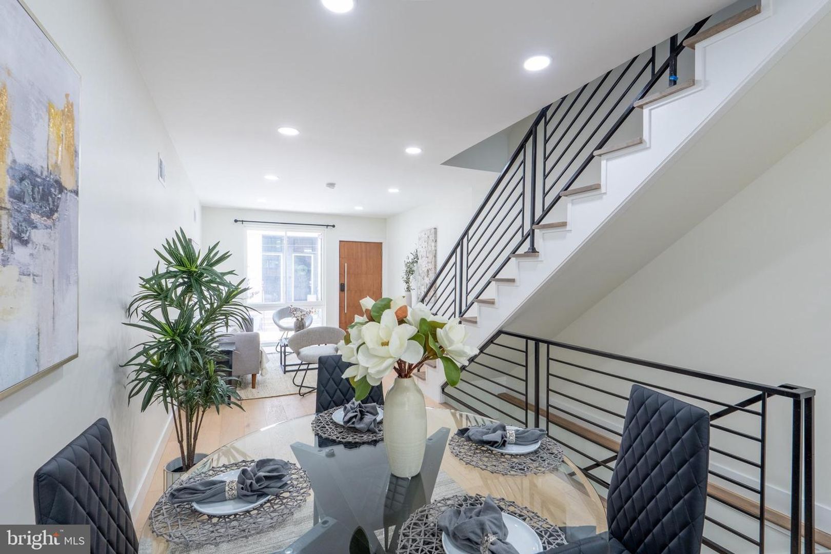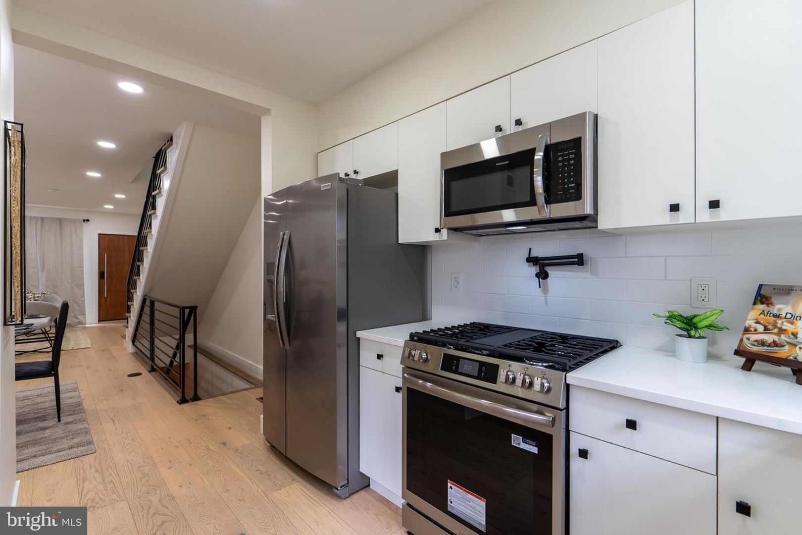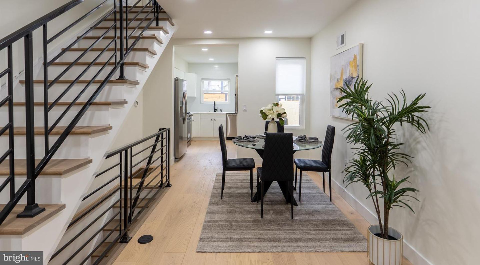 Experience contemporary city living in this stunning modern home located in the sought-after Dickinson Narrows neighborhood. This property showcases modern finishes and thoughtful upgrades throughout. Step inside through the grand 36" main door into a bright, open layout with hardwood floors flowing across all levels. The main floor boasts a stylish kitchen with quartz countertop, stainless steel appliances, and direct access to a composite deck and private fenced backyard - perfect for outdoor entertaining. The second floor offers two bedrooms and a full bathroom with a tub. Retreat to the third-floor primary suite, complete with a private bedroom and a sliding door leading to your own balcony deck. Continue up to the rooftop deck with city view - an ideal spot to unwind or host guests. The fully finished basement offers 8' ceilings, a full bathroom, and an egress window, making it ideal for a guest suite, home office, or gym. Enjoy year-round comfort with central A/C and all the conveniences of modern urban living. Don't miss this move-in ready gem in one of Philadelphia's most vibrant neighborhoods!