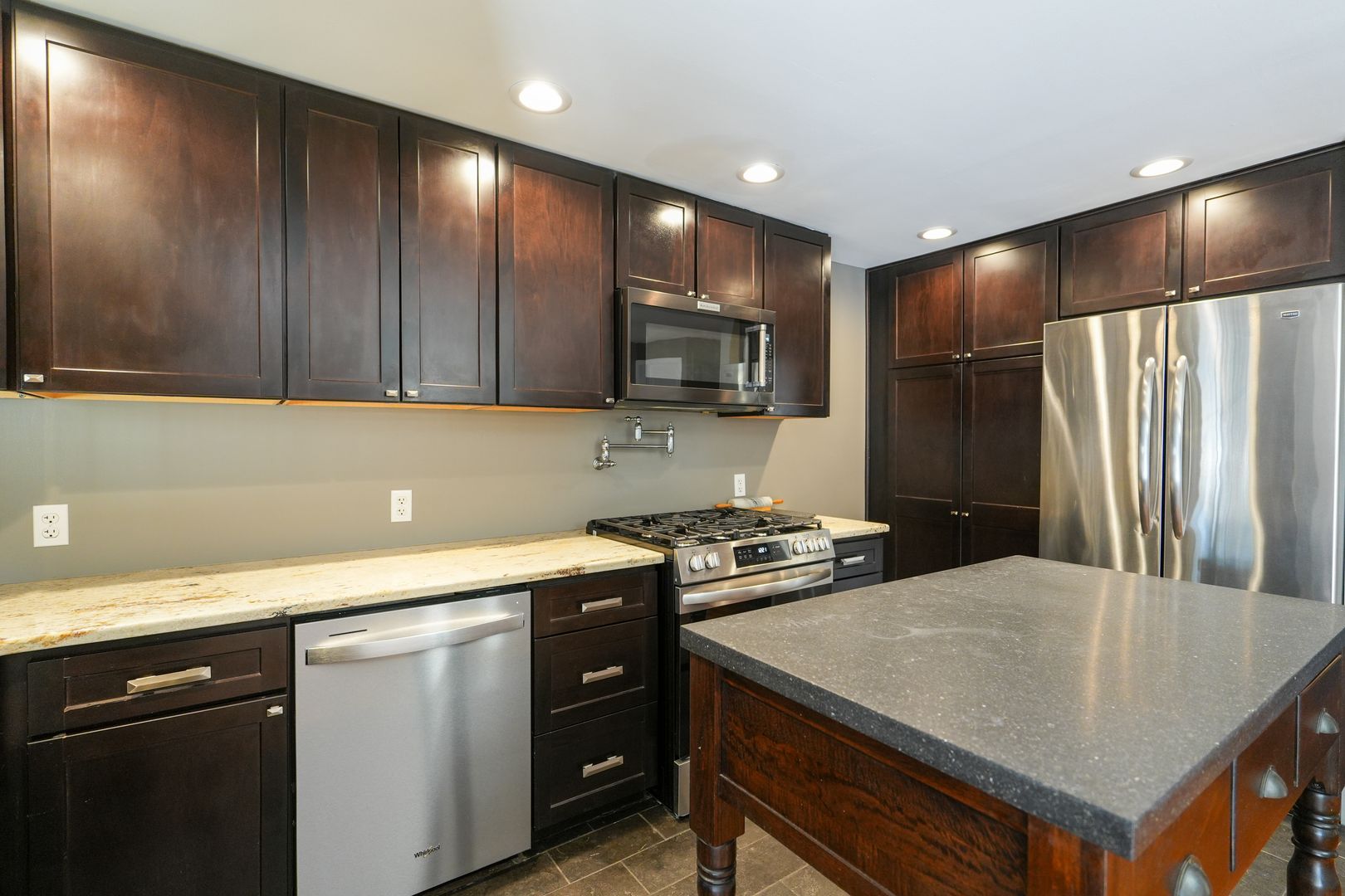 This charming townhome in Philadelphia's desirable Packer Park neighborhood offers an appealing rental in a peaceful, tree-lined South Philadelphia setting. The home features two spacious bedrooms and two full bathrooms with modern updates. The open-concept main level includes a bright living area flowing into a contemporary kitchen equipped with stainless steel appliances (full-size refrigerator, electric range with oven, dishwasher, and microwave), ample neutral-toned quartz or granite-style counters, and a convenient kitchen island that provides additional workspace, seating, and storage for effortless meal prep and casual dining.